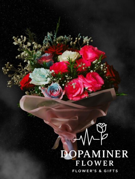 “بوكيه ورد كلاسيكي من تشكيلة الورود الجوري الطبيعي، متناسق بعناية وبألوان مبهجة ليضيف لمسة فرح وراحة للي بيتلقى الهدية. تصميمه
