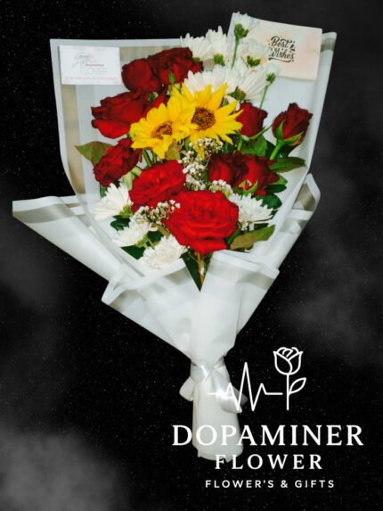 “A cheerful bouquet of fresh sunflowers, designed to brighten anyone’s day. Perfect for sending warm wishes and positive vibes to